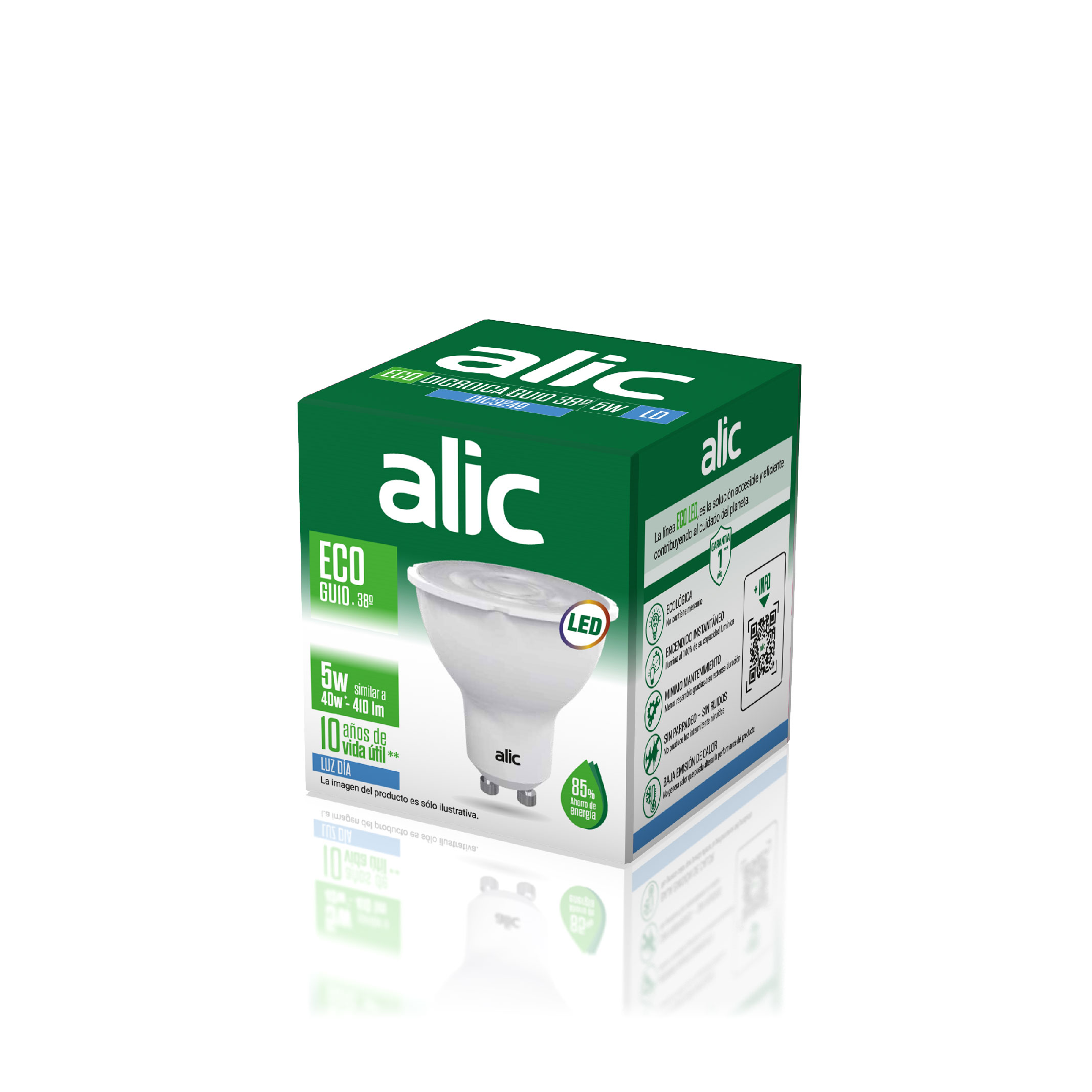 Lampara Dicroica 5W 38° Luz Calida GU10 ECO LED
