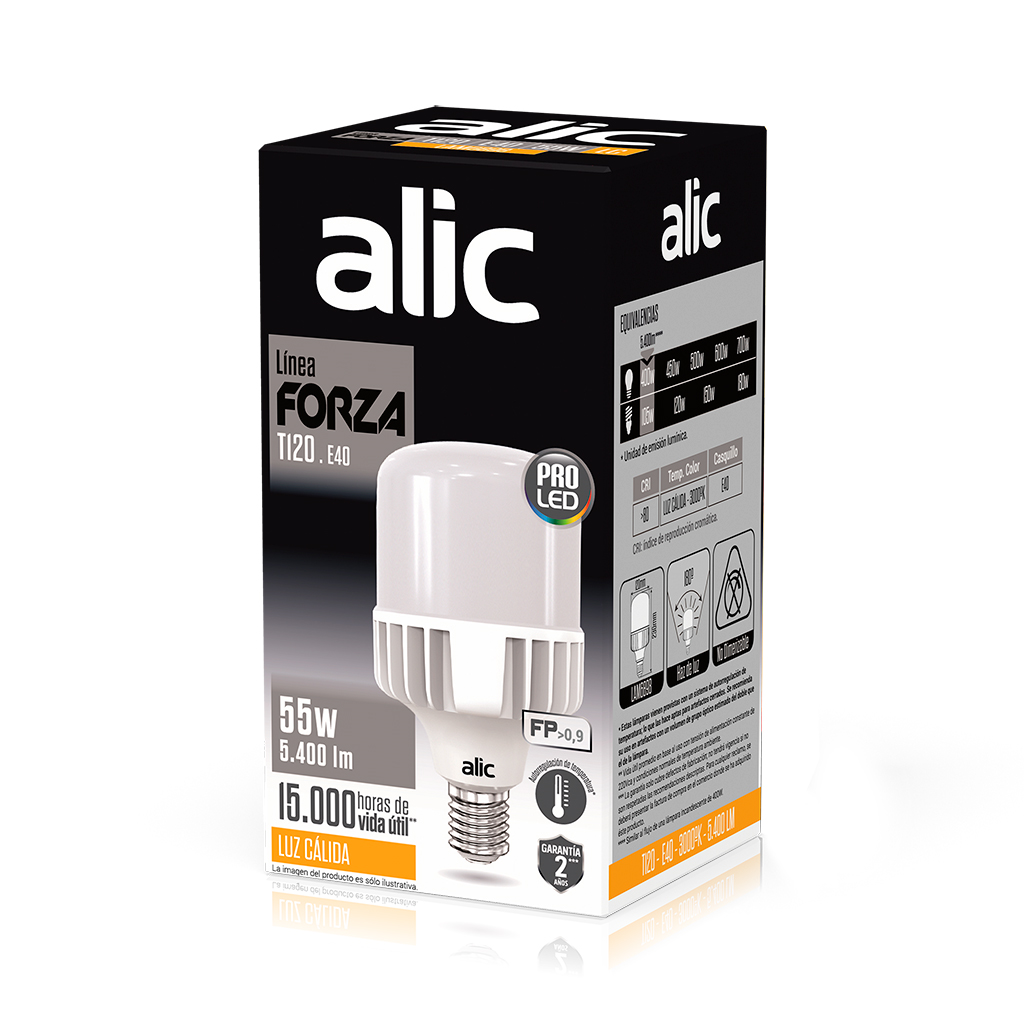 Lampara T120 HI POWER 55W Luz Calida E40 LED FORZA